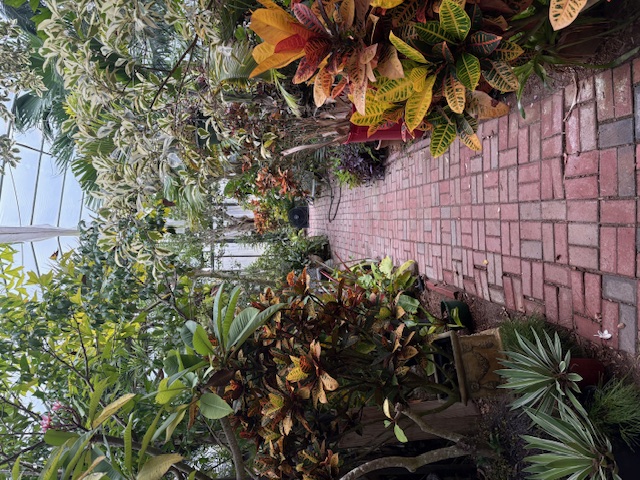 Fred has always had a love of tropical foliage. With this in mind, the Brumbachs have kept some type of greenhouse where ever they have lived. At La Casa del Wacho they now have a 30'x60'x18' tall conservatory. In this structure are planted many tropical trees, bromeliads, and space for the 100 or more tropical pot gardens to be housed during the winter months.