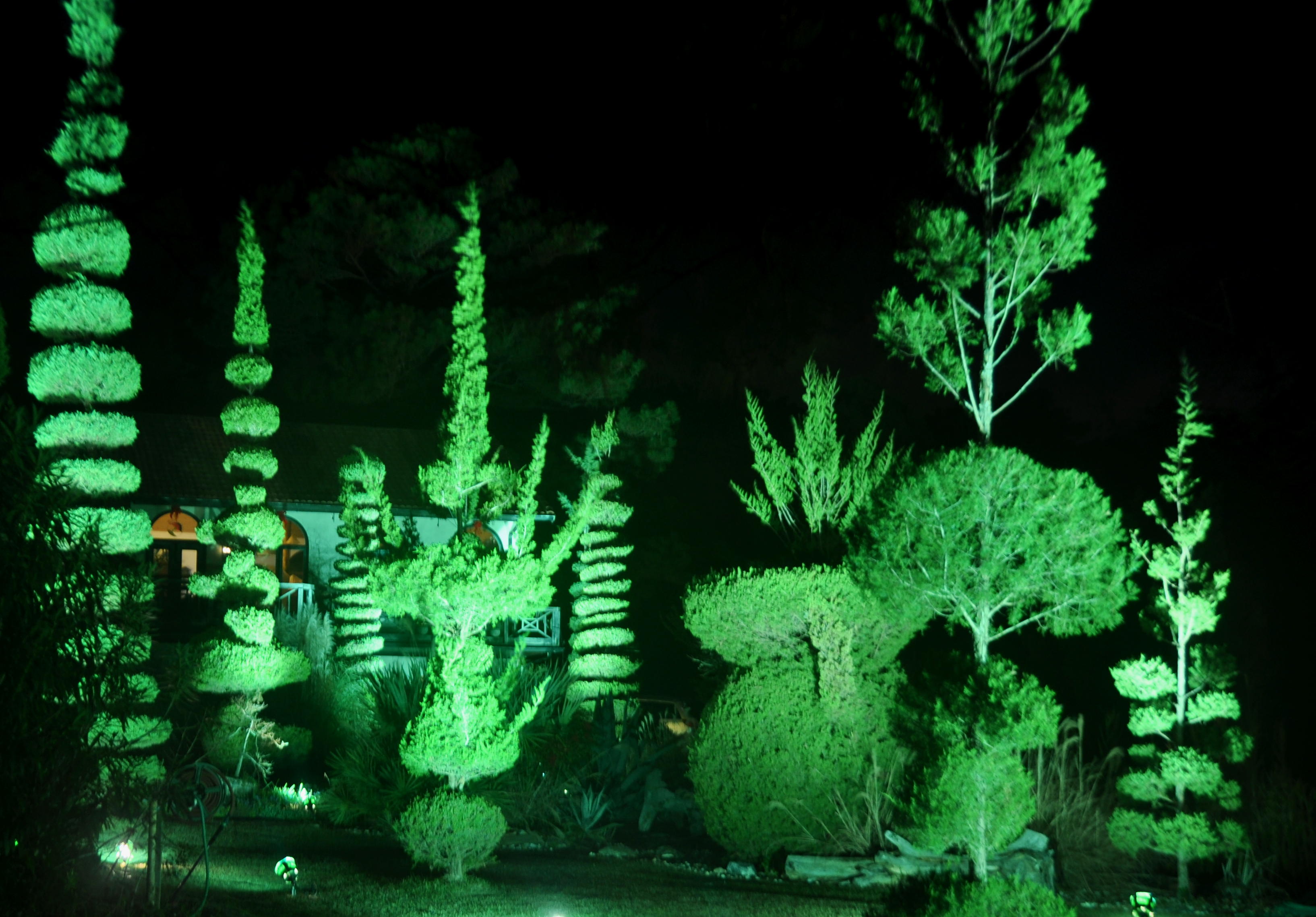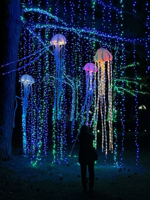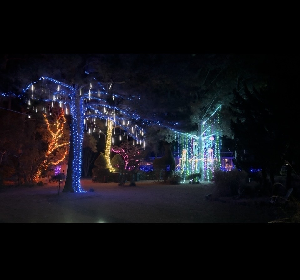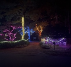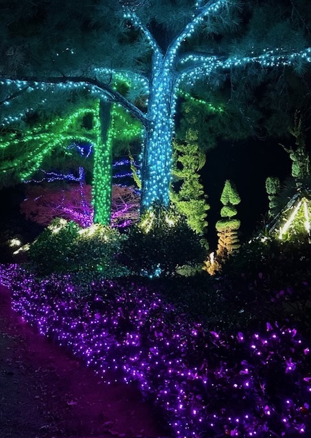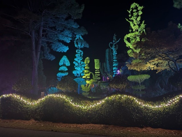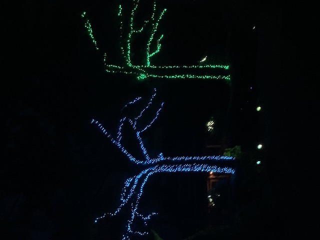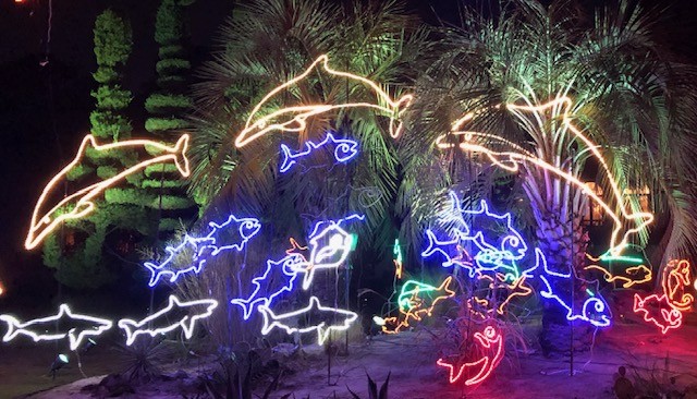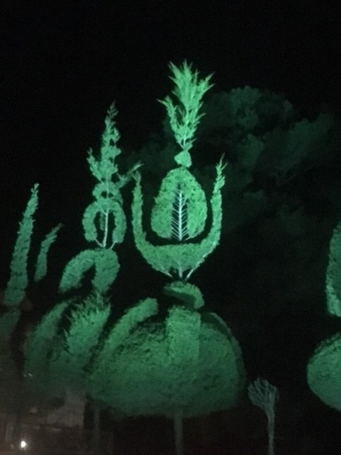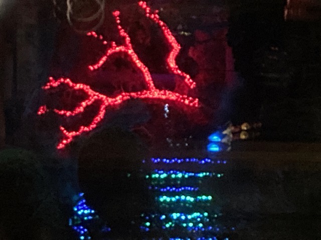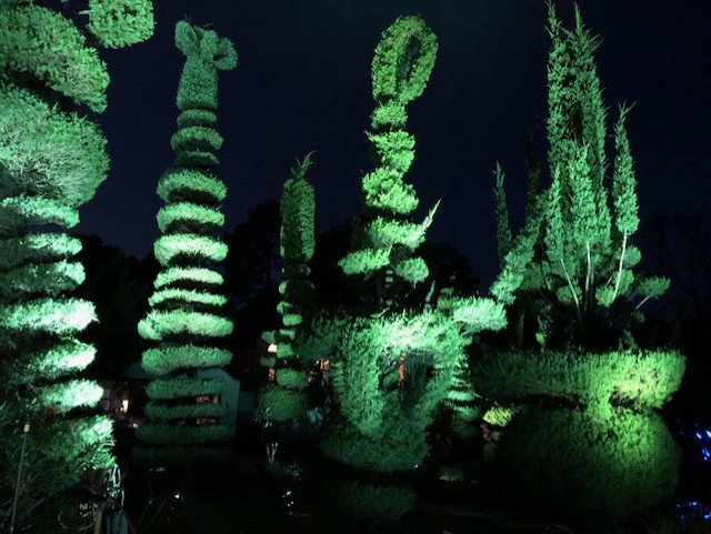 Both Joan and I are designers, and I specialize in lighting,consequently we highlight our topiary gardens and add some locally themed festivity during the Christmas holiday for the community to enjoy! We try to make it a little different each year and enjoy it so much, we leave some of it year round! Our philosophy is,
